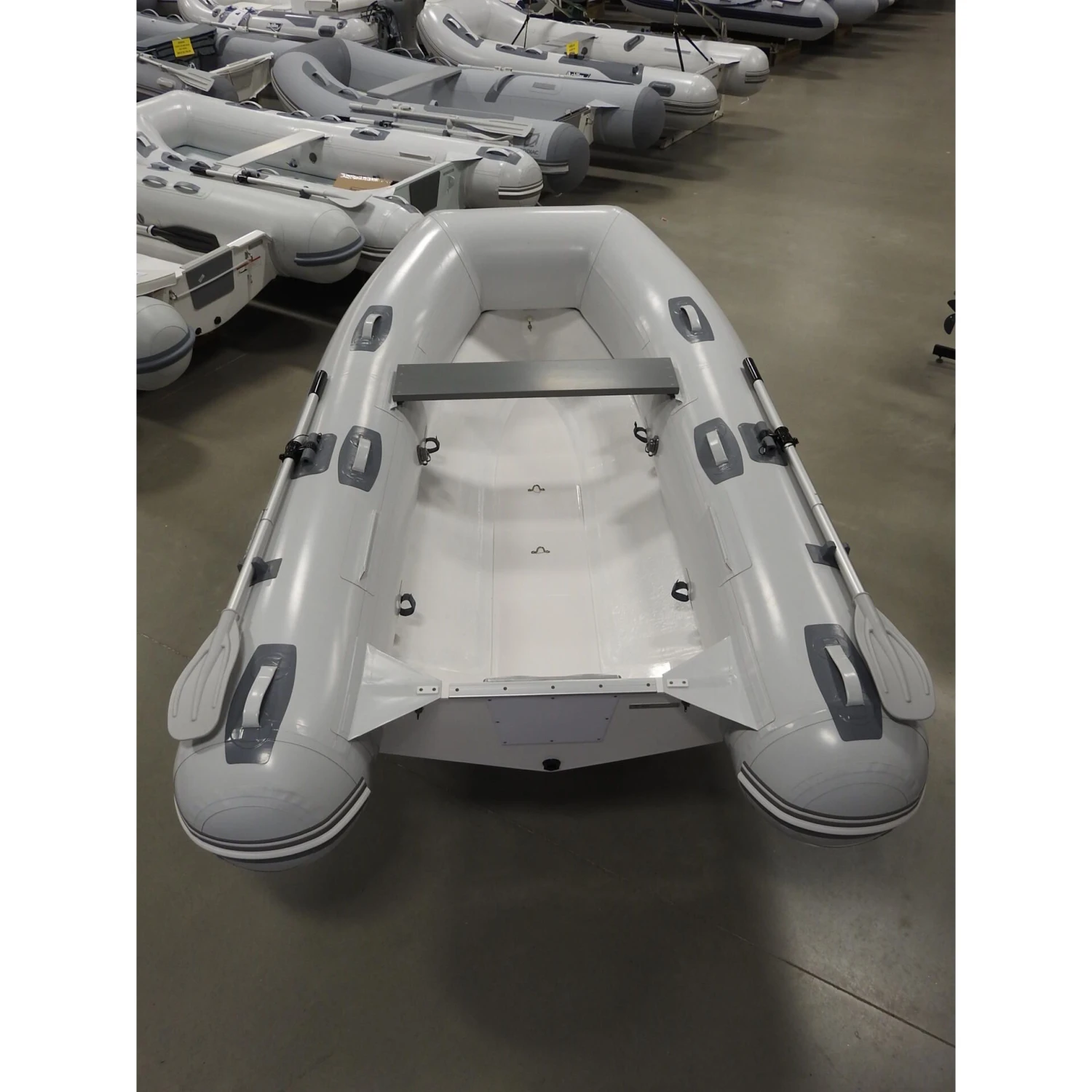 - Rigid deep “V” fiberglass hull