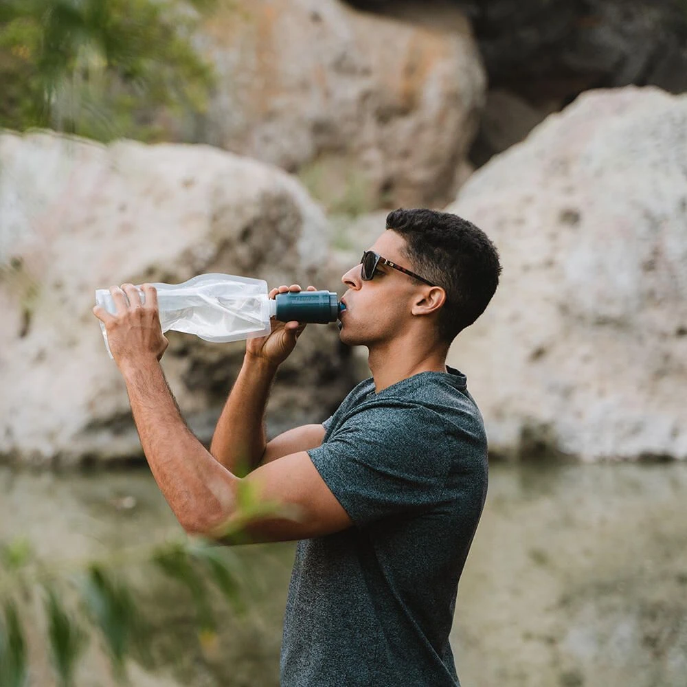 The RapidPure® Purifier + Multi-Use System is purification your way. The POD housing slides over the POD purification cartridge and locks it into place to create a 4-way multifunctional system. Attach to any standard 28 mm bottle or use with the included soft bottle for filtered and purified water as you drink. Connect the included emergency straw for a pocket-sized, ultralight purifier. Hang the soft bottle from a tree to create your own gravity system or connect the system to your hydration pack for inline purification.