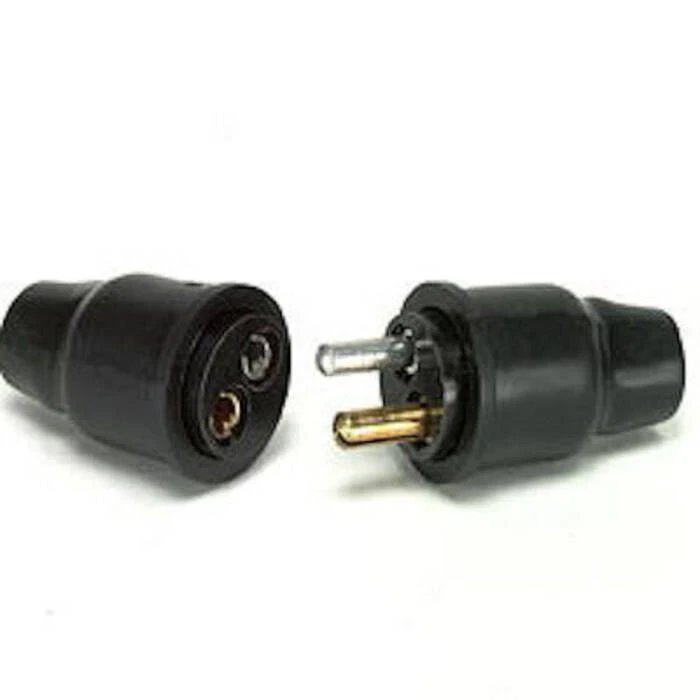 2-pole in line mated connectors with protective rubber caps.