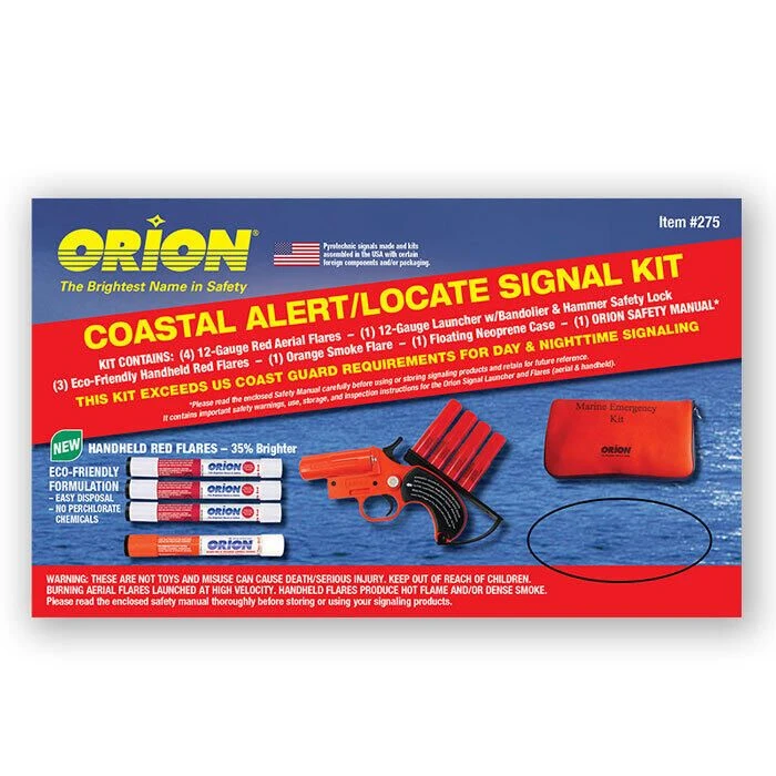 - Perfect inland or coastal kit that contains aerial, handheld, and smoke signaling devices