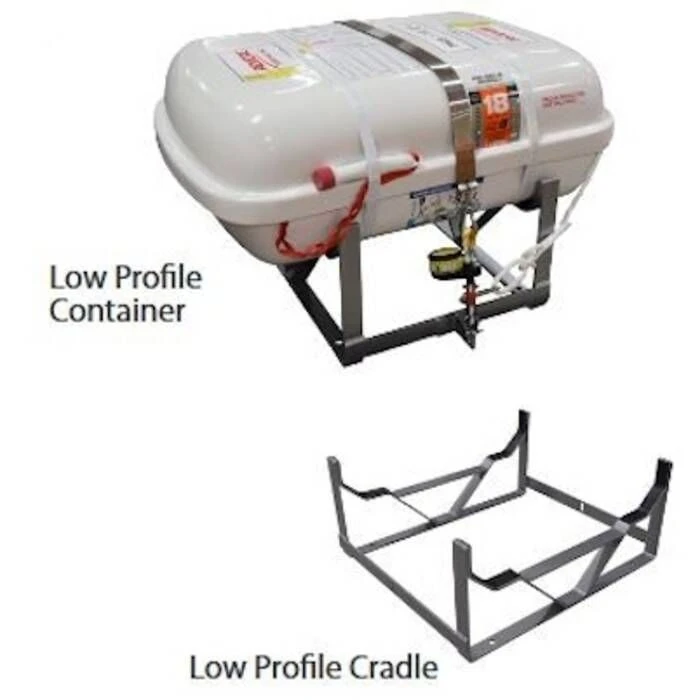 - Cradle assemblies for Revere low profile containers are constructed with light-weight powder coated aluminum and include a securing strap with hydrostatic release