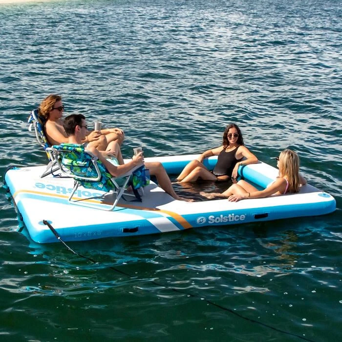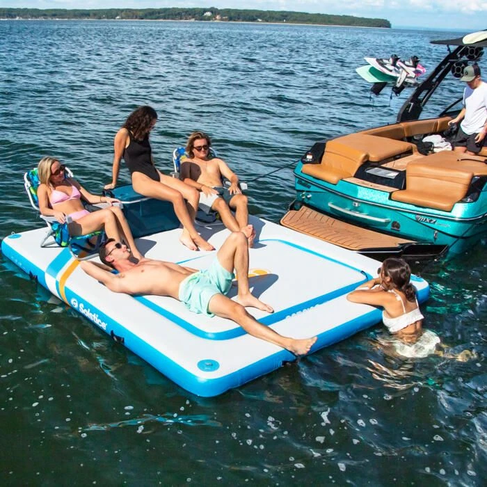 Solstice’s Inflatable Rectangular Mesh Dock is an innovative, all-in-1 floating platform that allows you to use it as as a dock, lounge, or lounge with floating dock. The dock is constructed with an 8″ core and provides enough buoyancy and stability to support up to 8 people with minimal tossing, turning, or tipping.