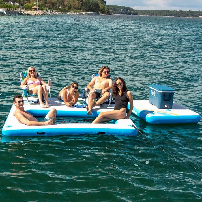 - Rectangular inflatable dock with 8′ wide platform